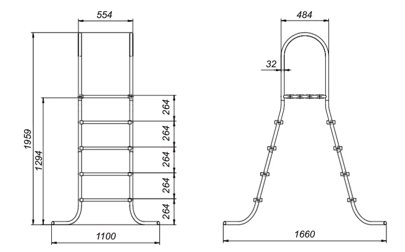 Высота 125 см. Лестница для бассейнов высотой до 128 см.